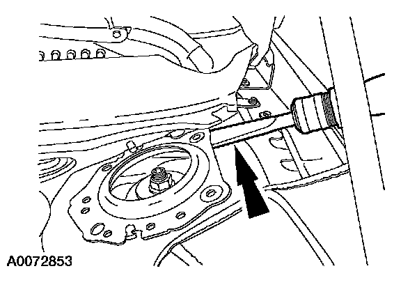 14. CAUTION: Do not drill deeper than 9.6 mm (0.38 inch) into the strut tower.