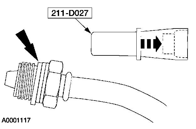 Using the special tool, install a new Teflon seal on the hose fitting.