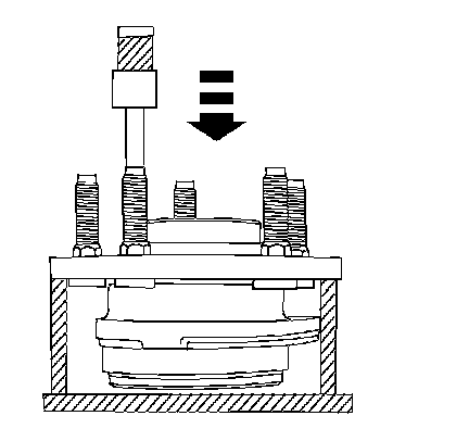 1. Position the rear hub in a press. Support the flange on each side of the wheel stud hole. Line up the serrations and install the wheel stud.