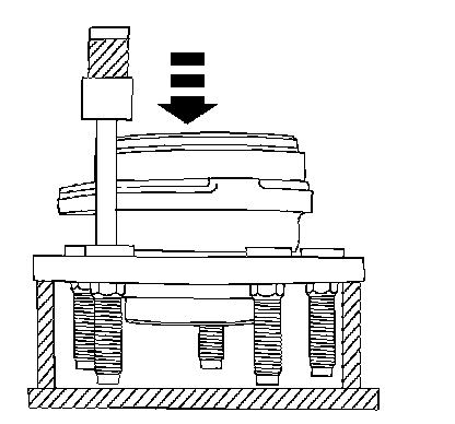 2. Position the rear hub in a press. Support the flange on each side of the wheel stud and remove the wheel stud.