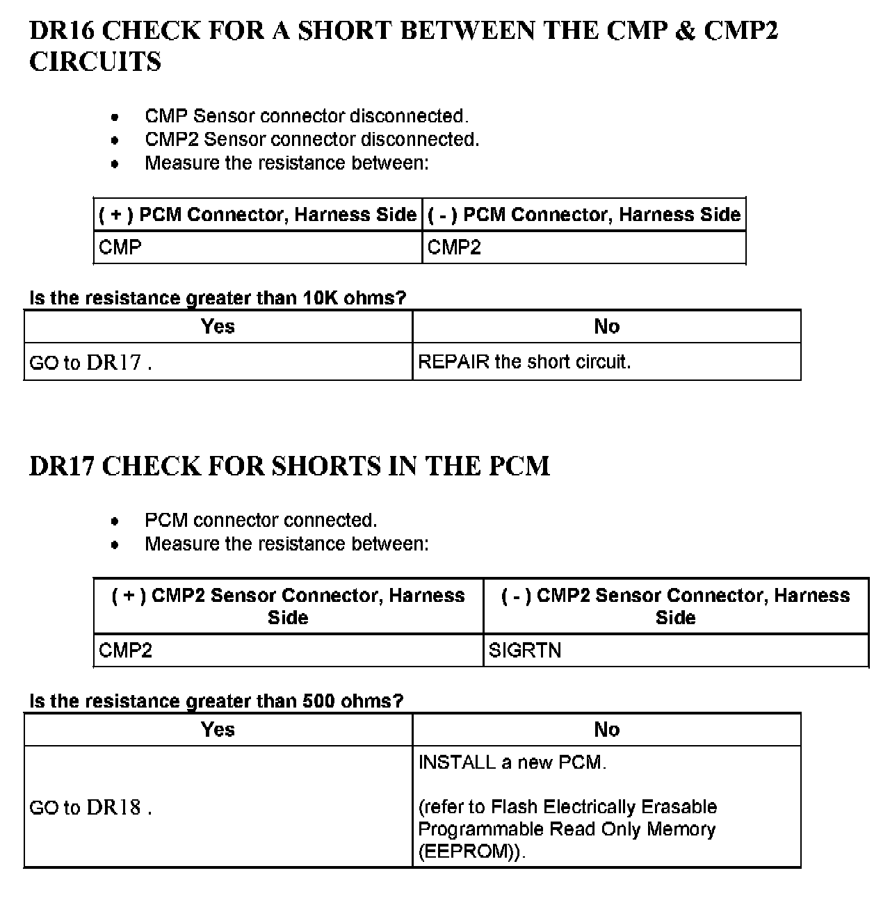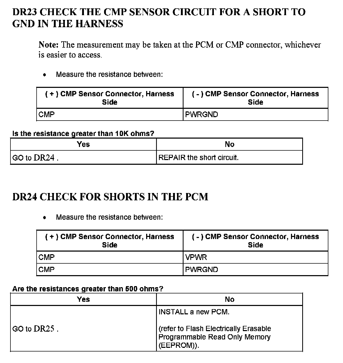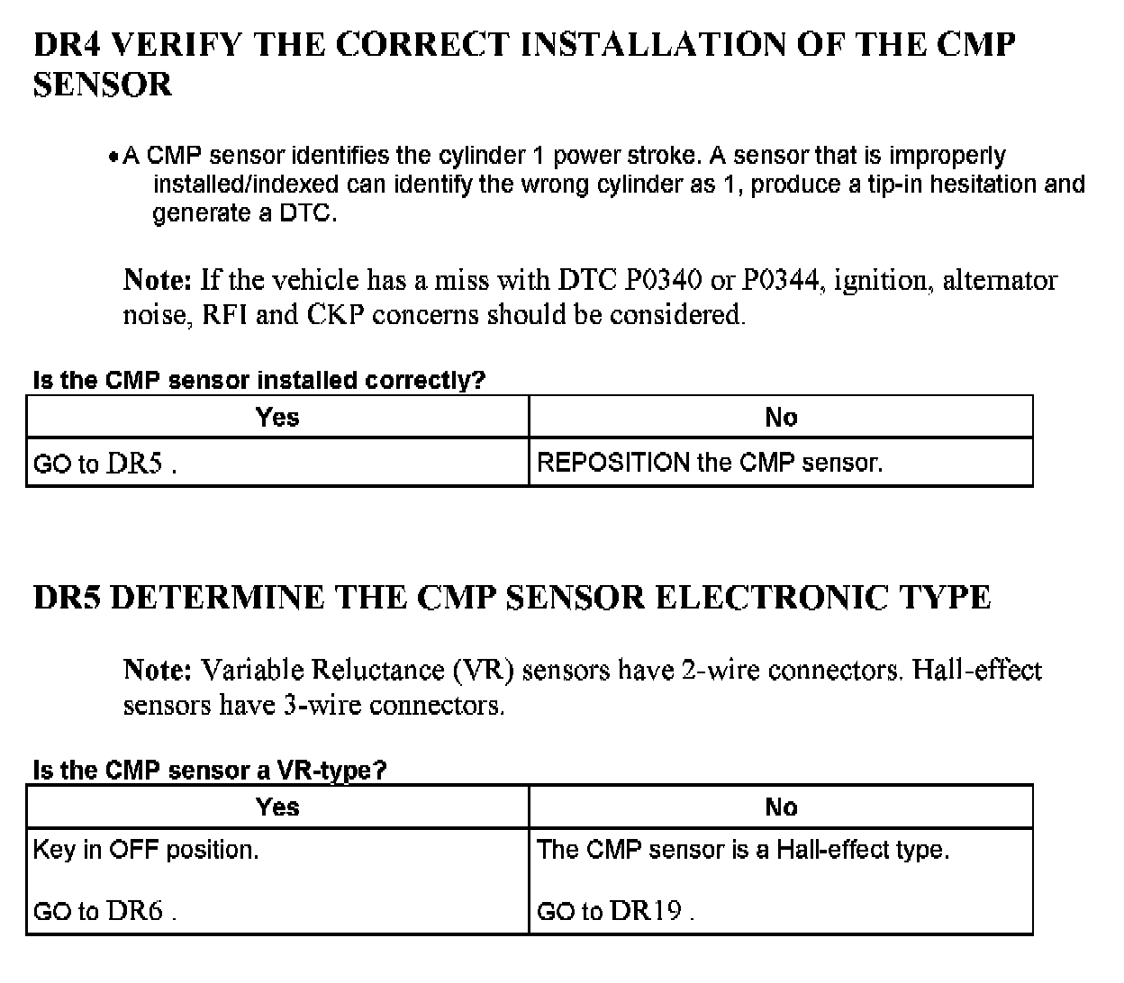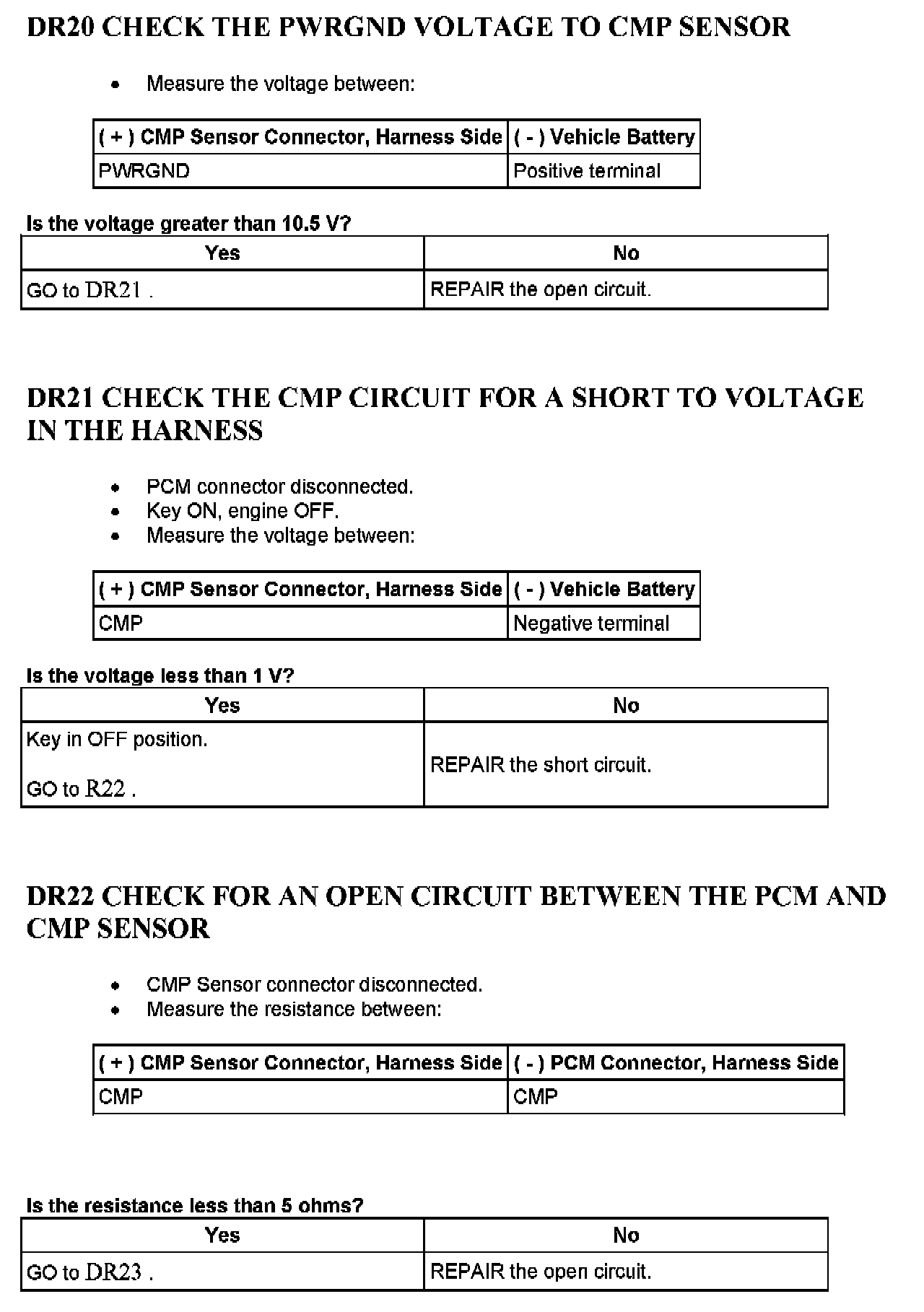 Tests DR: Camshaft Position (CMP) Sensor