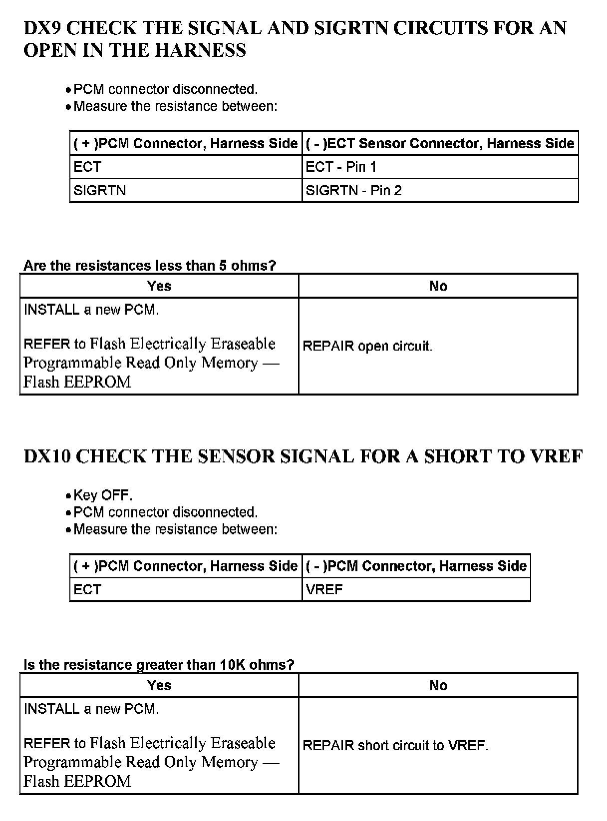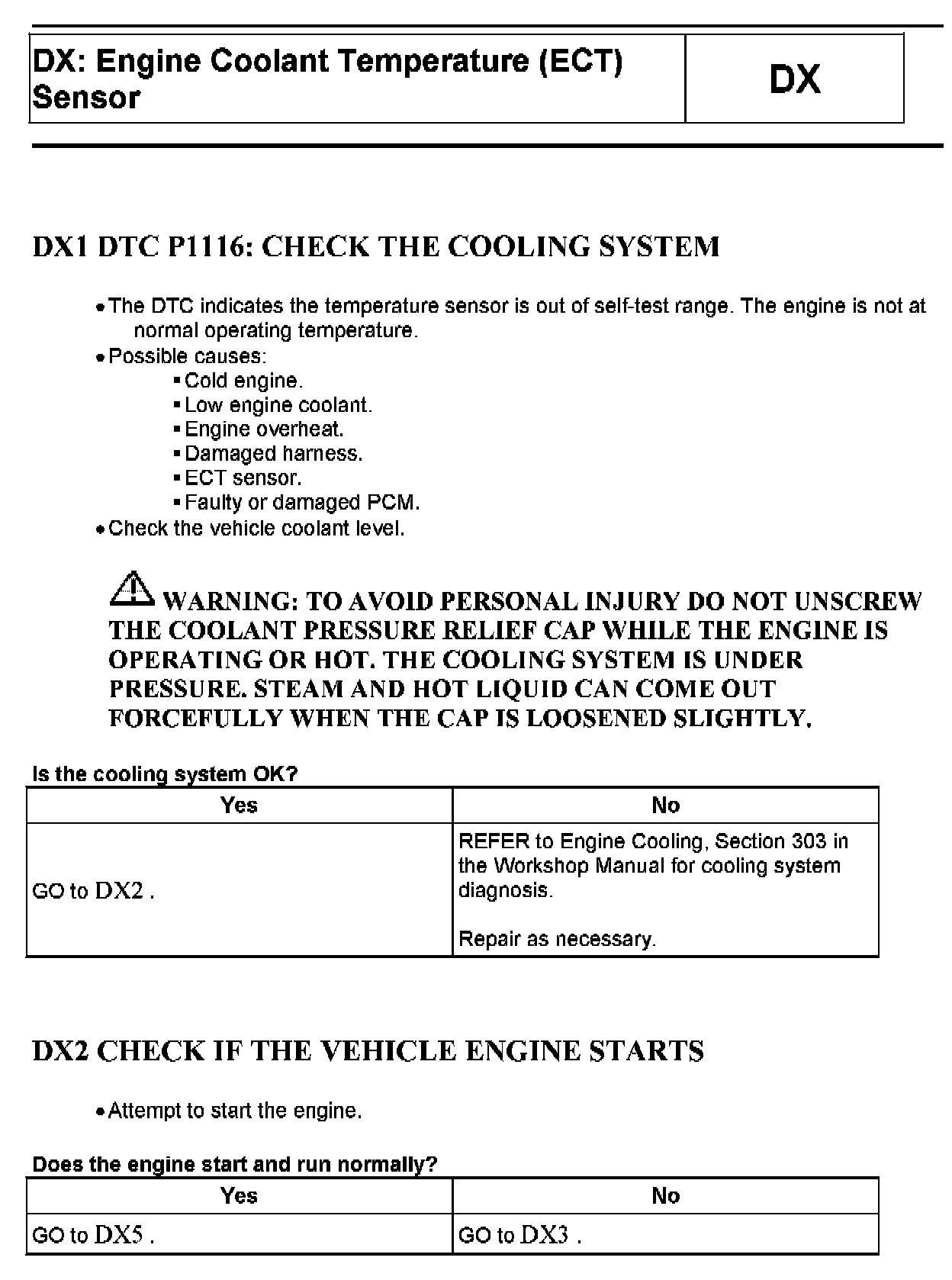 Tests DX: Engine Coolant Temperature (ECT) Sensor