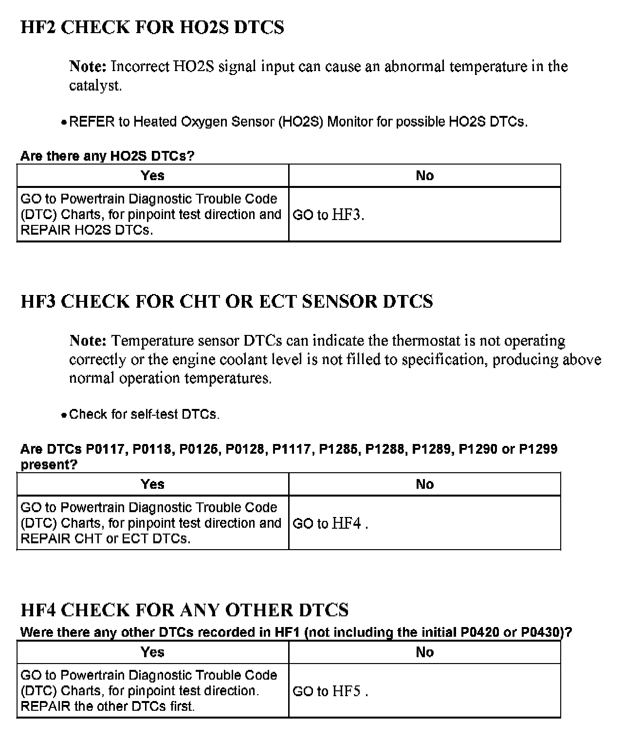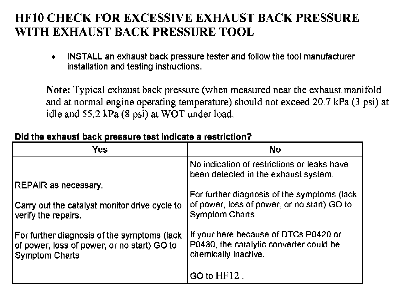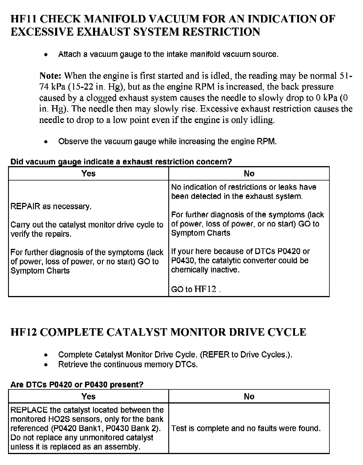Tests HF: Catalyst Efficiency Monitor and Exhaust Systems