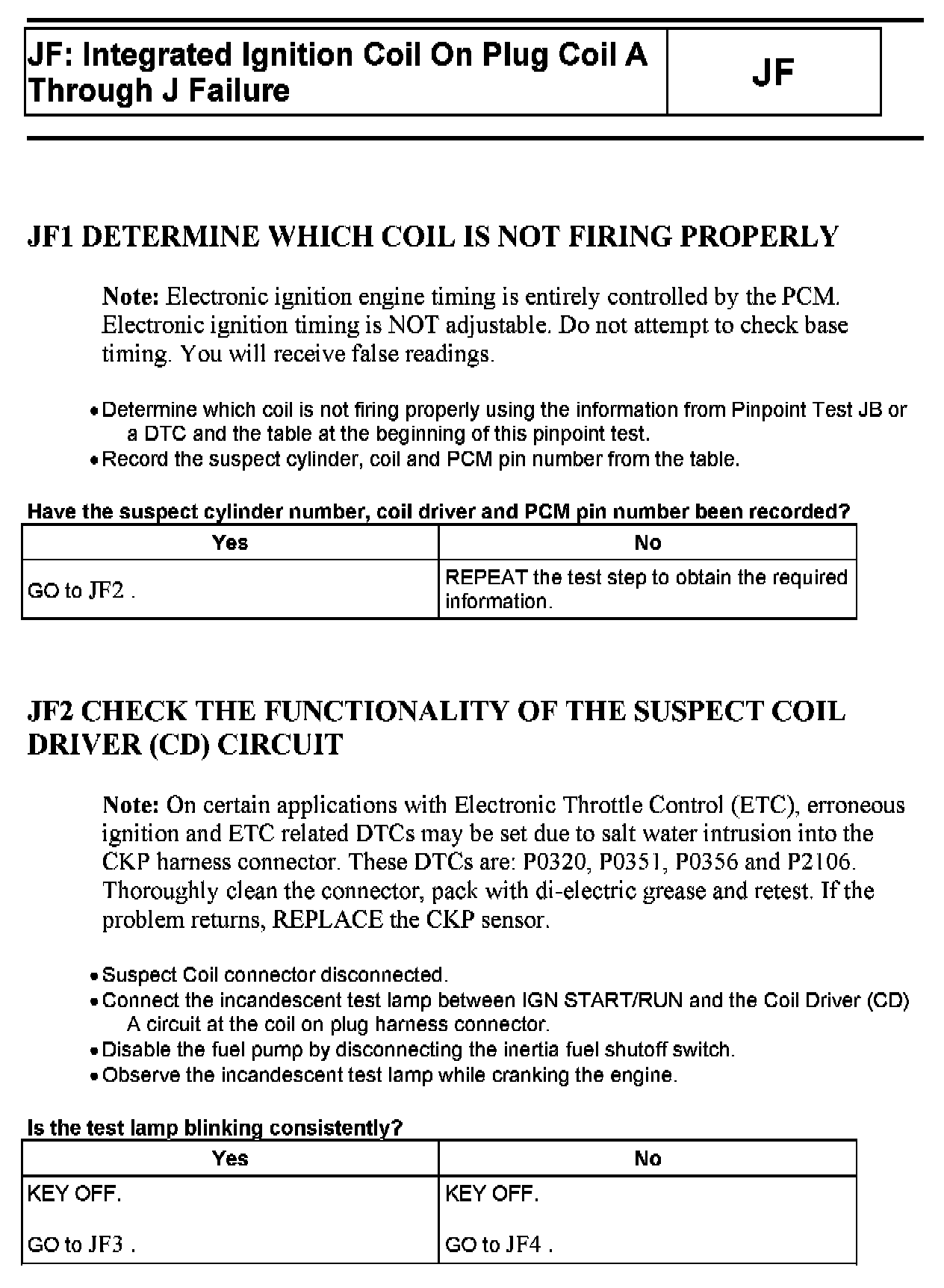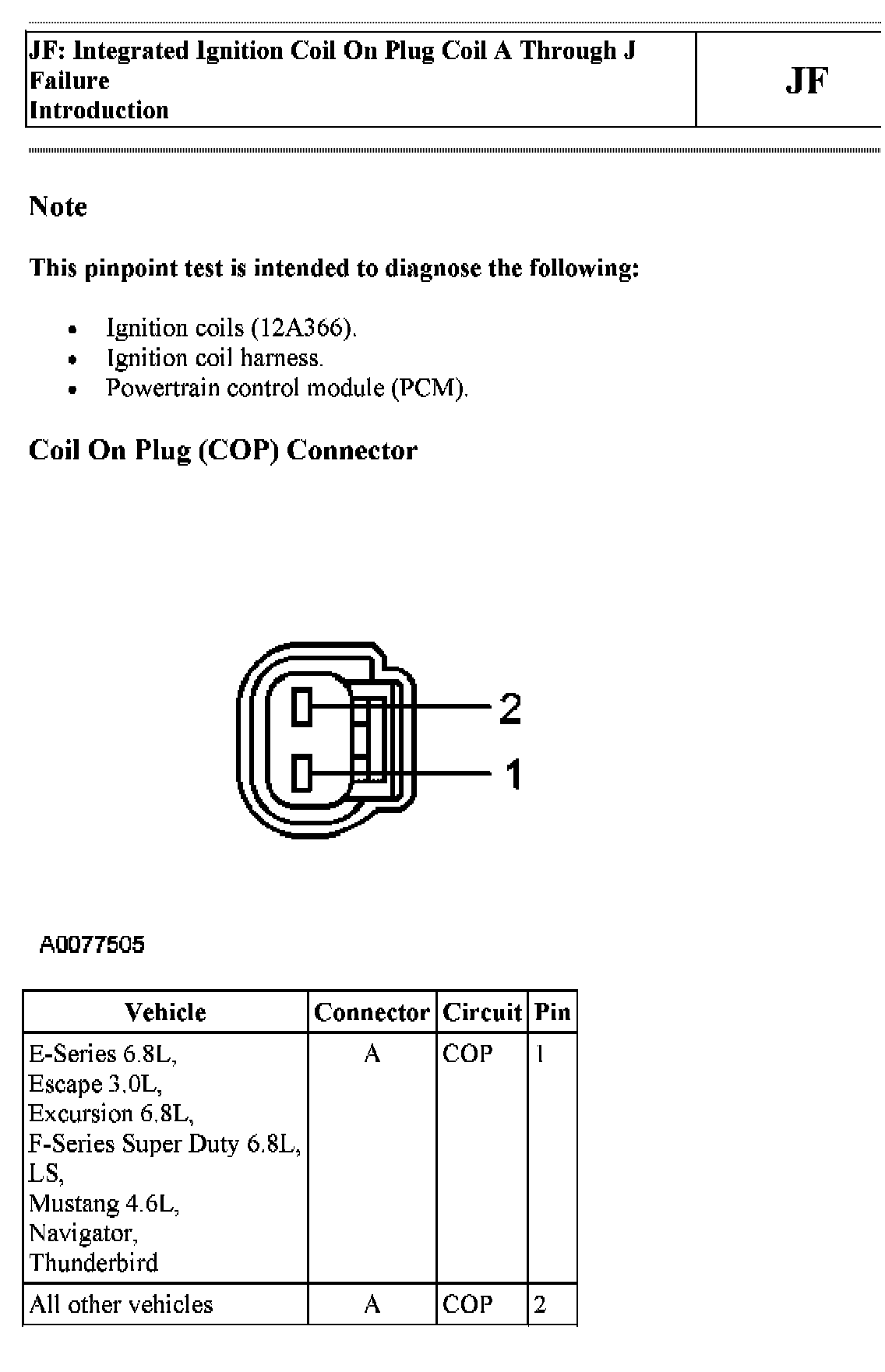 PINPOINT TEST JF: INTEGRATED IGNITION COIL ON PLUG COIL A THROUGH D FAILURE