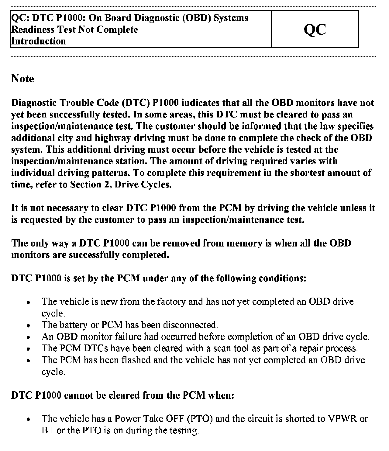 Tests QC: OBD Systems Readiness Test Not Complete - DTC P1000