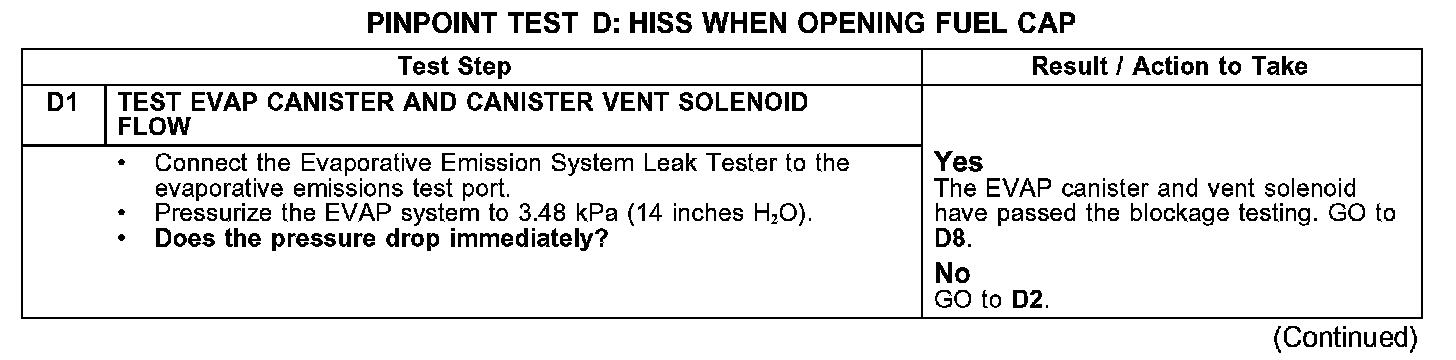 PINPOINT TEST D: HISS WHEN OPENING FUEL CAP