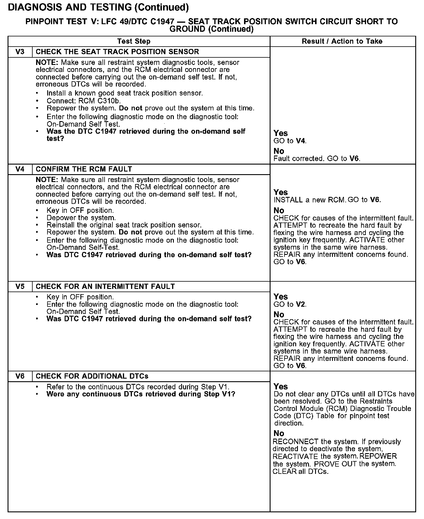 PINPOINT TEST V: LFC 49/DTC C1947 - SEAT TRACK POSITION SWITCH CIRCUIT SHORT TO GROUNDTest V1-V2: