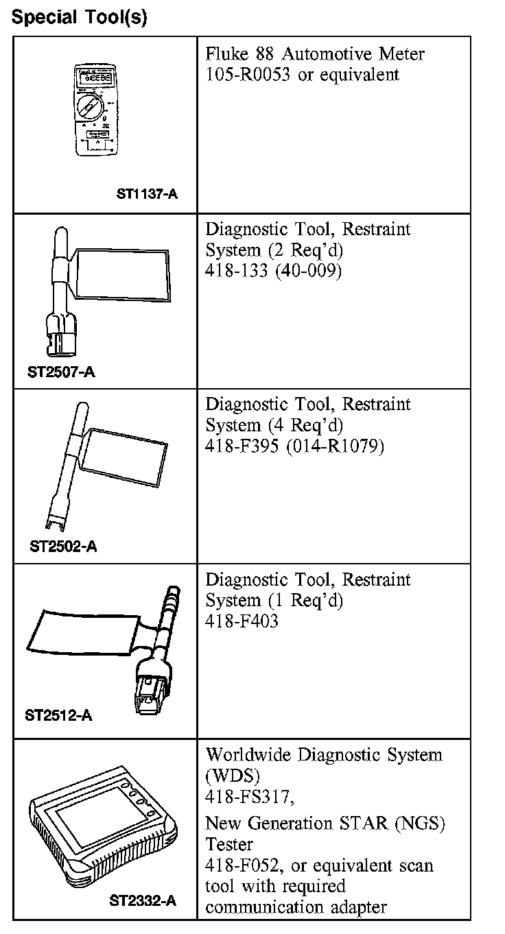RESTRAINT SYSTEM DIAGNOSTIC TOOL WARNING