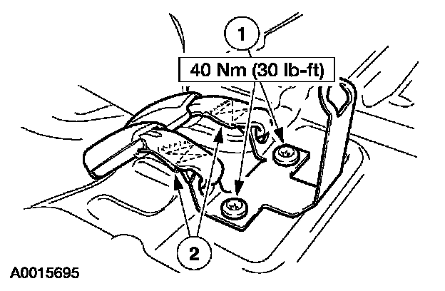 NOTE: New safety belt buckles, height adjusters, center adjust tongues and belts and retractors can be installed separately. However, if a safety belt assembly was in use during a collision, a new belt and retractor must be installed as well as the center adjust tongue and belt and buckle assembly or the center adjust tongue and the cable and buckle assembly. When installing new safety belts and buckles, height adjusters, safety cables and buckles, center adjust tongues and belt and retractors, use only the parts specified in the Ford Master Parts Catalog for the make and model of the vehicle being repaired. Safety belt assemblies must not be interchanged between vehicle models.