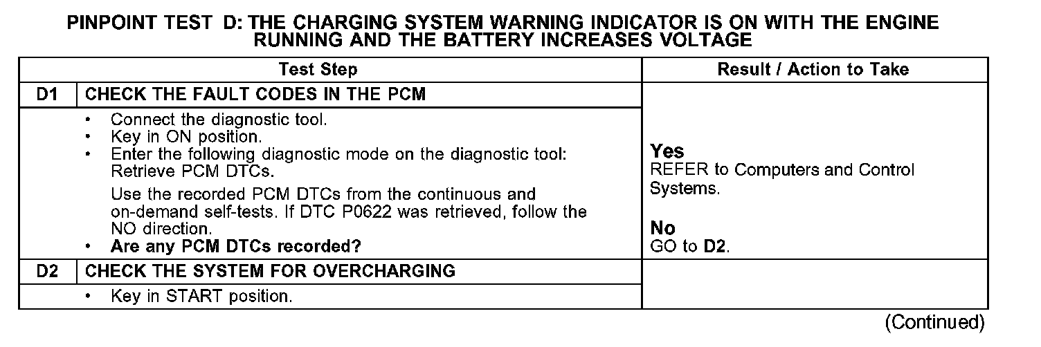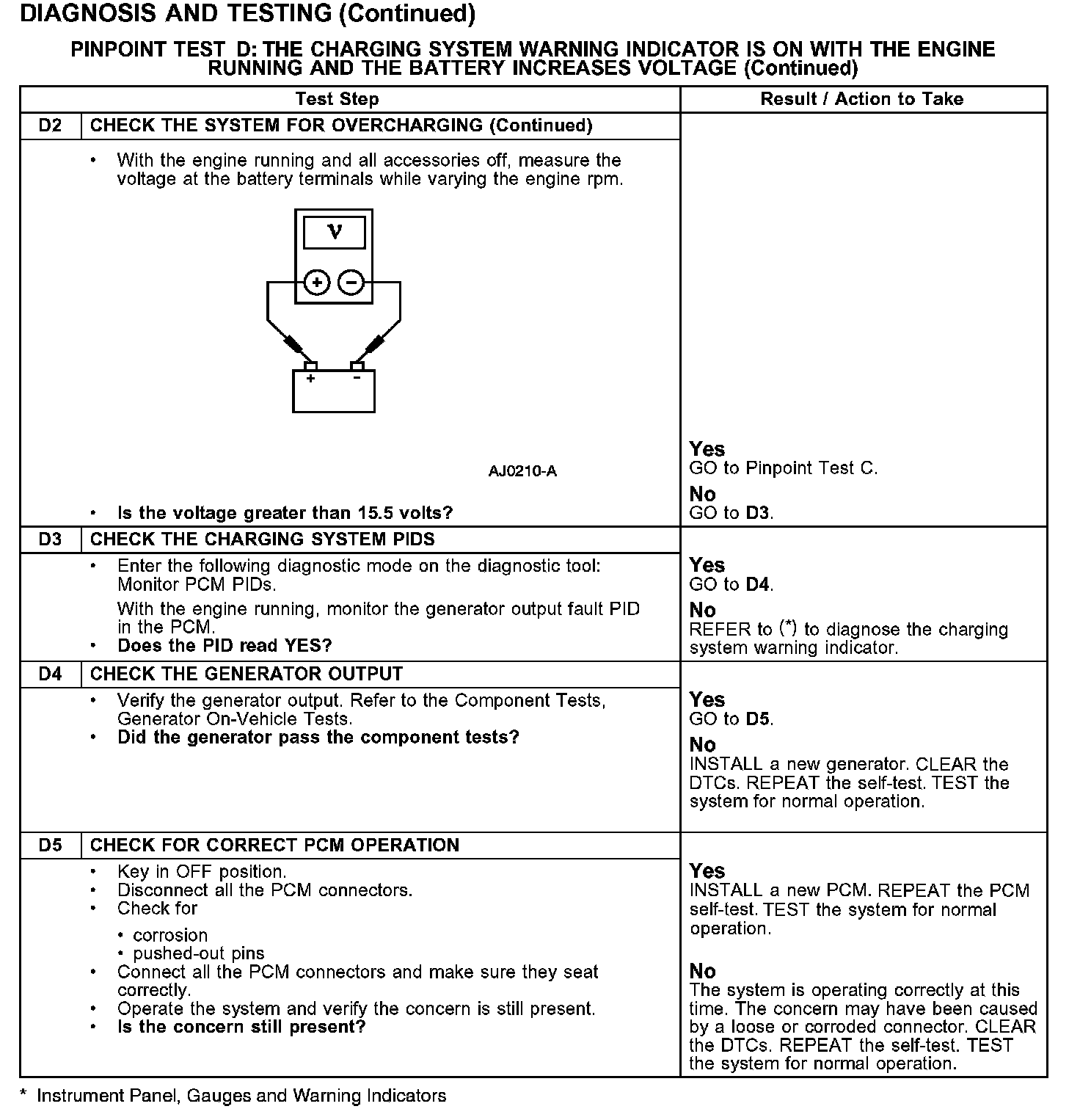 WARNING INDICATOR IS ON WITH THE ENGINE RUNNING AND THE BATTERY INCREASES VOLTAGE
