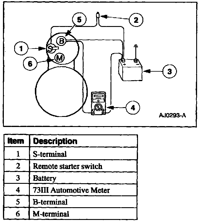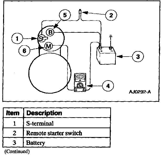 3. Connect a remote starter switch between the starter solenoid S-terminal and the battery positive (+) terminal.