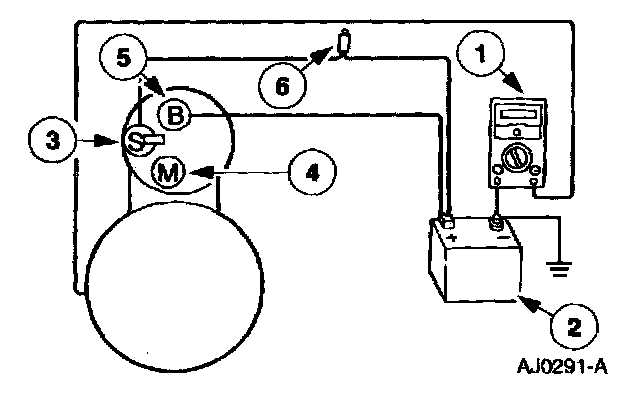 1. Connect the 73III Automotive Meter positive lead to the starter motor housing (the connection must be clean and free of rust or grease). Connect the negative lead to the negative (-) battery terminal.