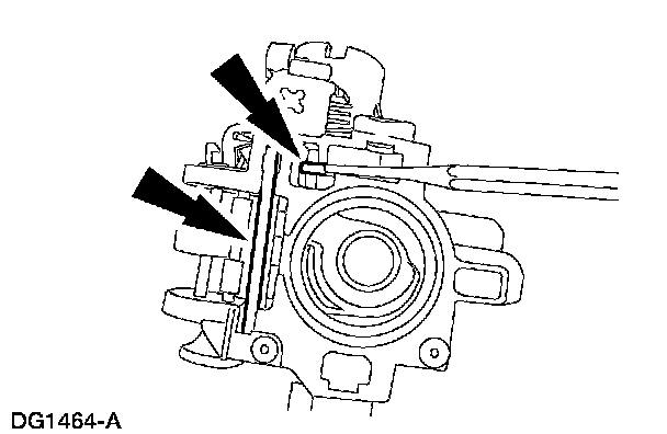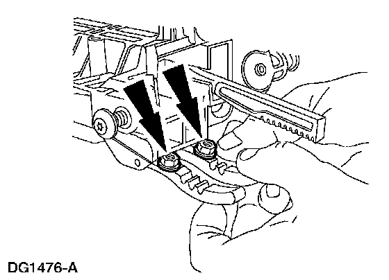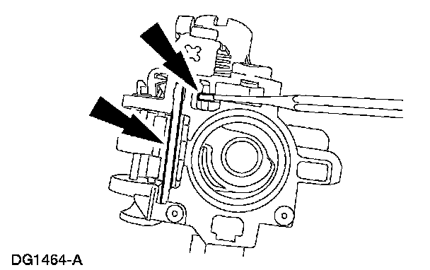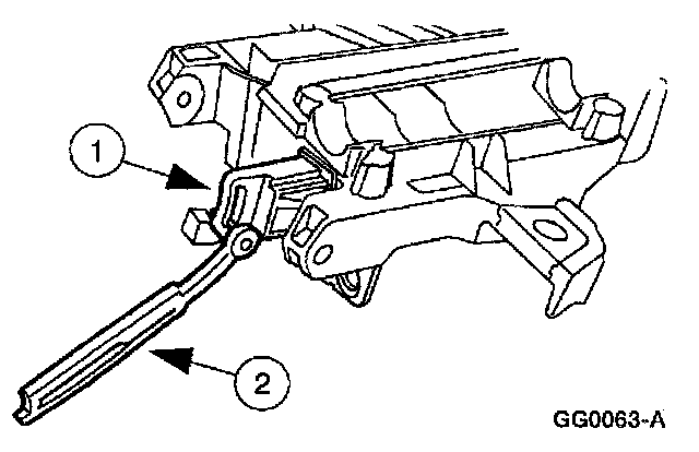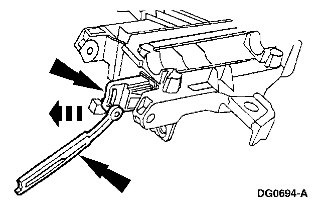 1 Pry up on the lock actuator lever (LH) using a shop fabricated tool.