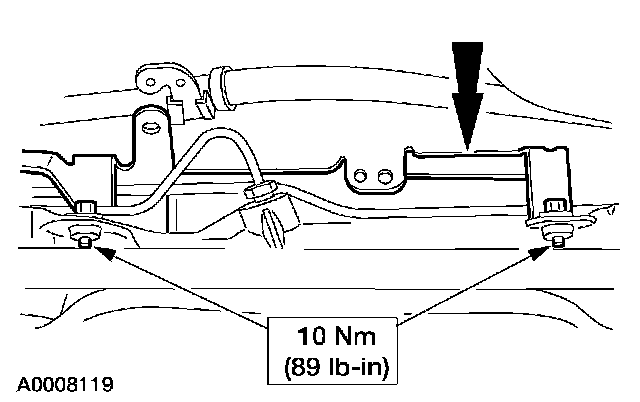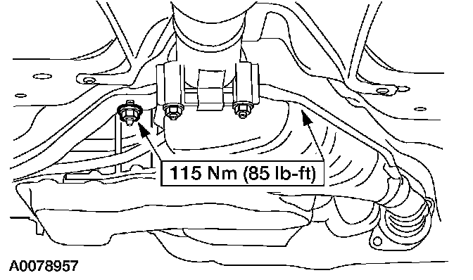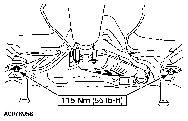11. Remove and discard the bolts. Lower the rear of the front subframe approximately 102 mm (4 inches).