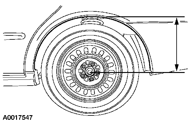 5. Using a jack stand, raise the suspension until the distance between the center of the hub and the lip of the fender is equal to the measurement taken in Removal procedure (curb height).