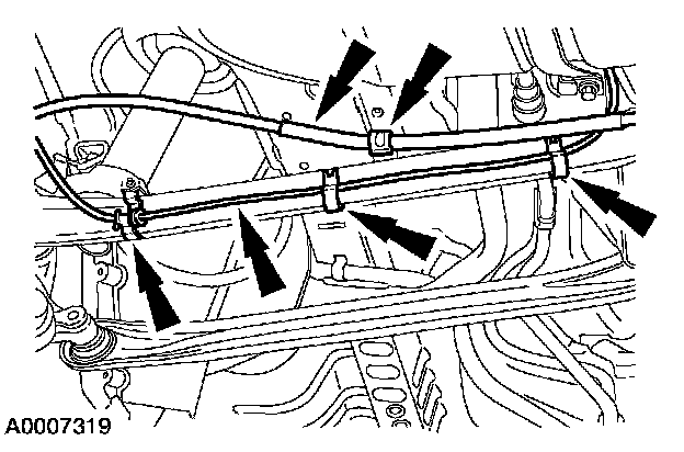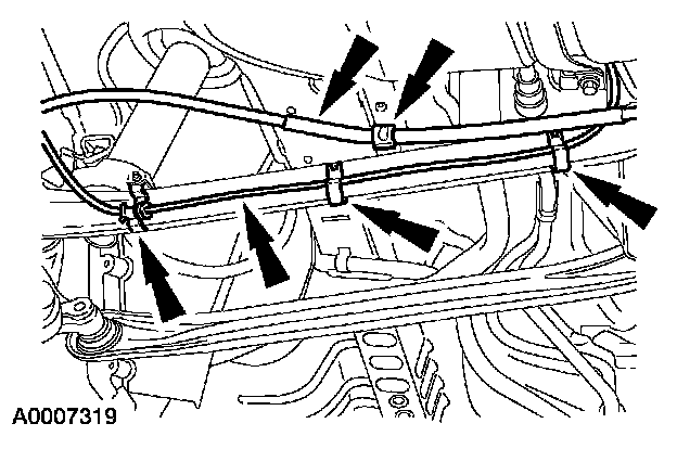 9. Attach the rear brake anti-lock sensor wiring harness and the parking brake cable.