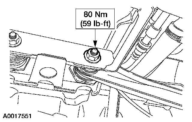 CAUTION: Suspension fasteners are critical parts because they affect performance of vital components and systems and their failure can result in major service expense. A new part with the same part number, or an equivalent part, must be installed if installation is necessary. Do not use a new part of lesser quality or substitute design. Torque values must be used as specified to make sure of correct retention of these parts.