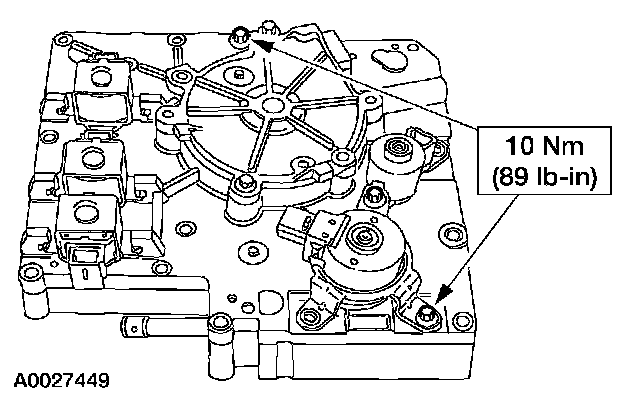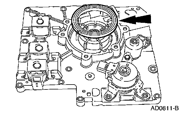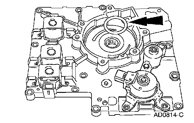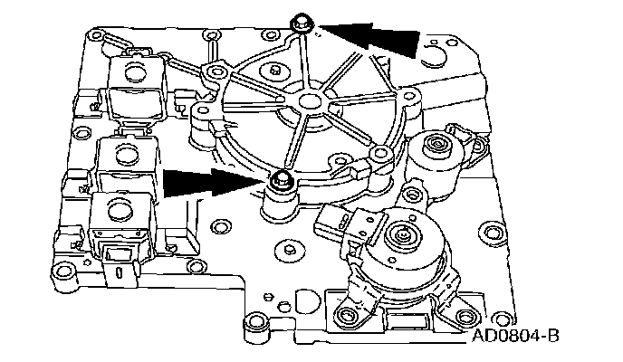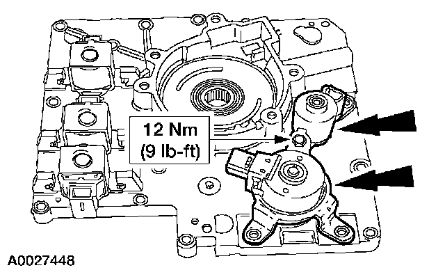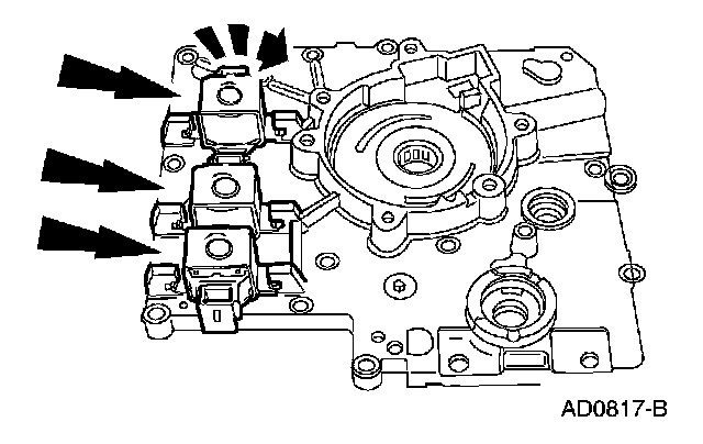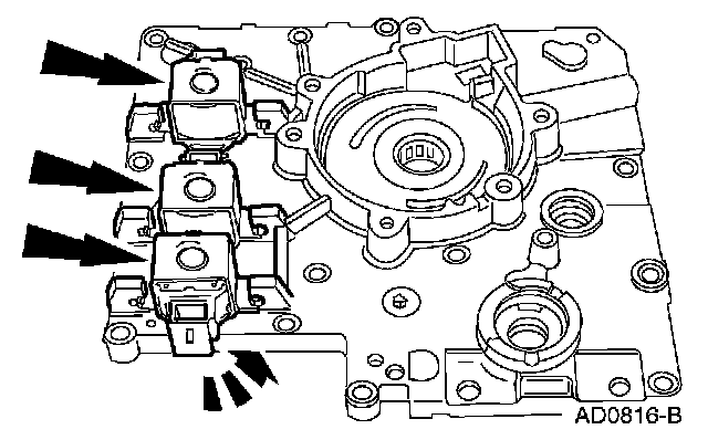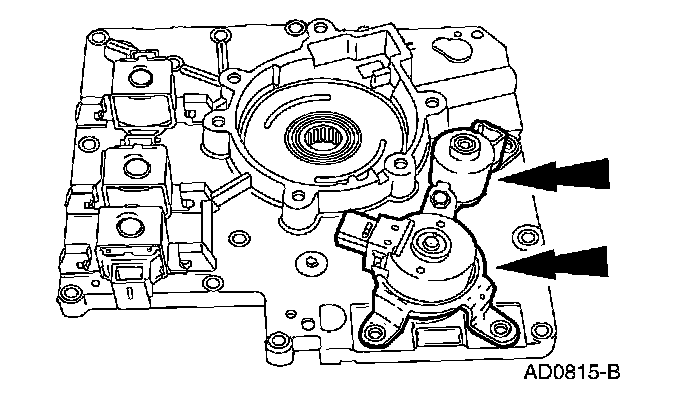 15. NOTE: The shift solenoids are interchangeable. Take note of the shift solenoid connector orientation.