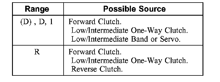 In each of the following ranges (D) , D, 1, R, press the accelerator pedal to the floor and hold it just long enough to let the engine get to Wide Open Throttle (WOT). While making this test, do not hold the throttle open for more than 5 seconds at a time.
