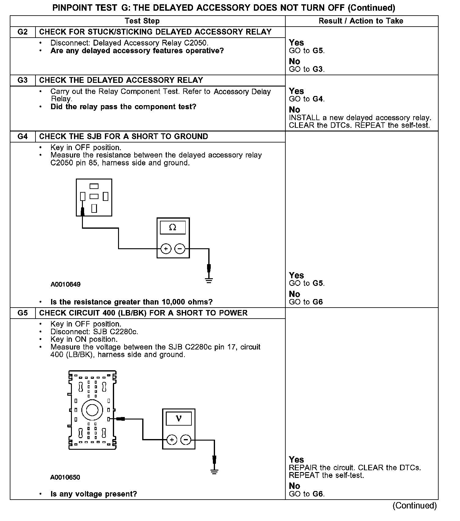 PINPOINT TEST G: THE DELAYED ACCESSORY DOES NOT TURN OFF