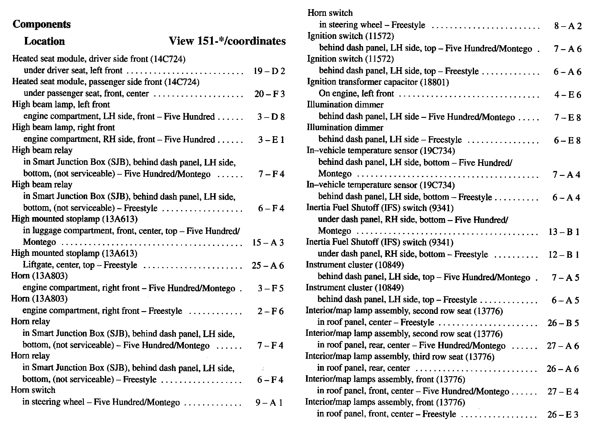 Component Location Index