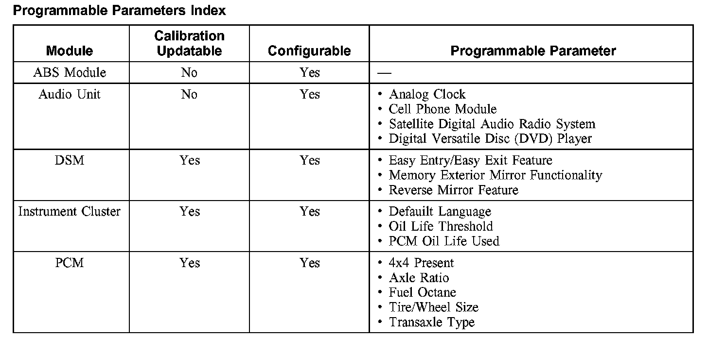 Programmable Parameters Index