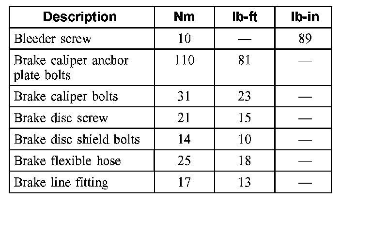Torque Specifications: