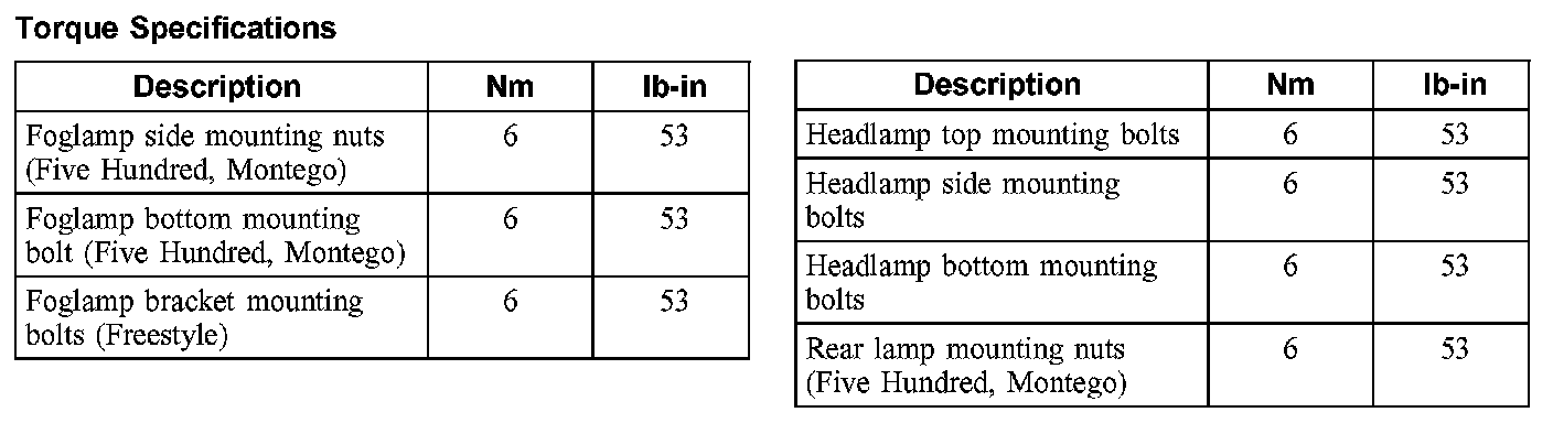 Torque Specifications: