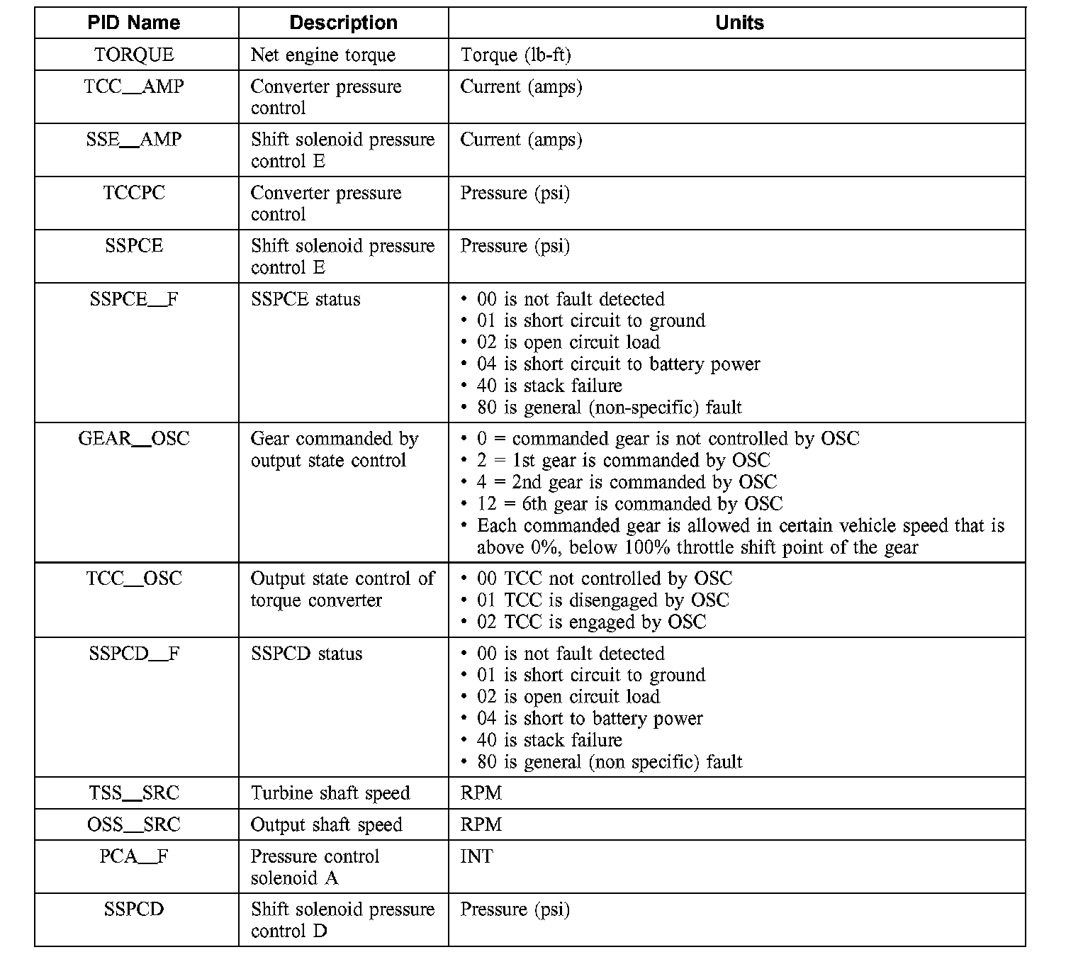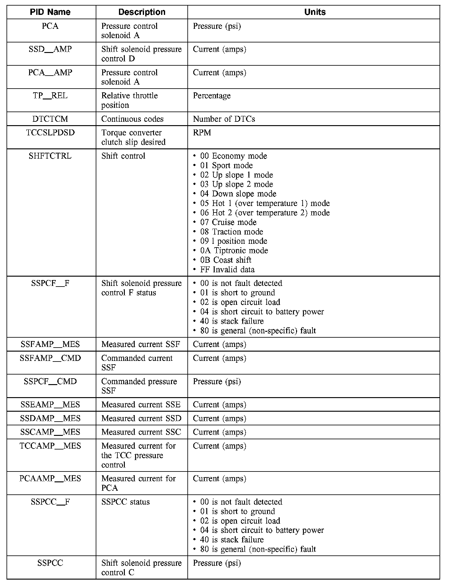 Diagnostic Parameters Identification (PID) Chart