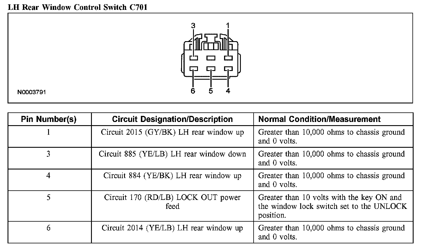 LH Rear Window Control Switch C701: