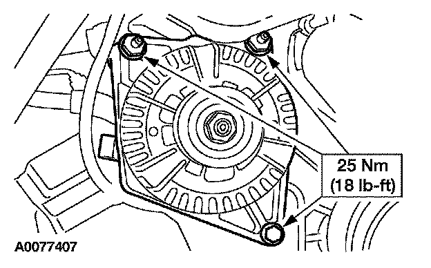 7. Remove the left-hand upper stud bolt and the lower generator bolt. Loosen the right upper stud bolt.