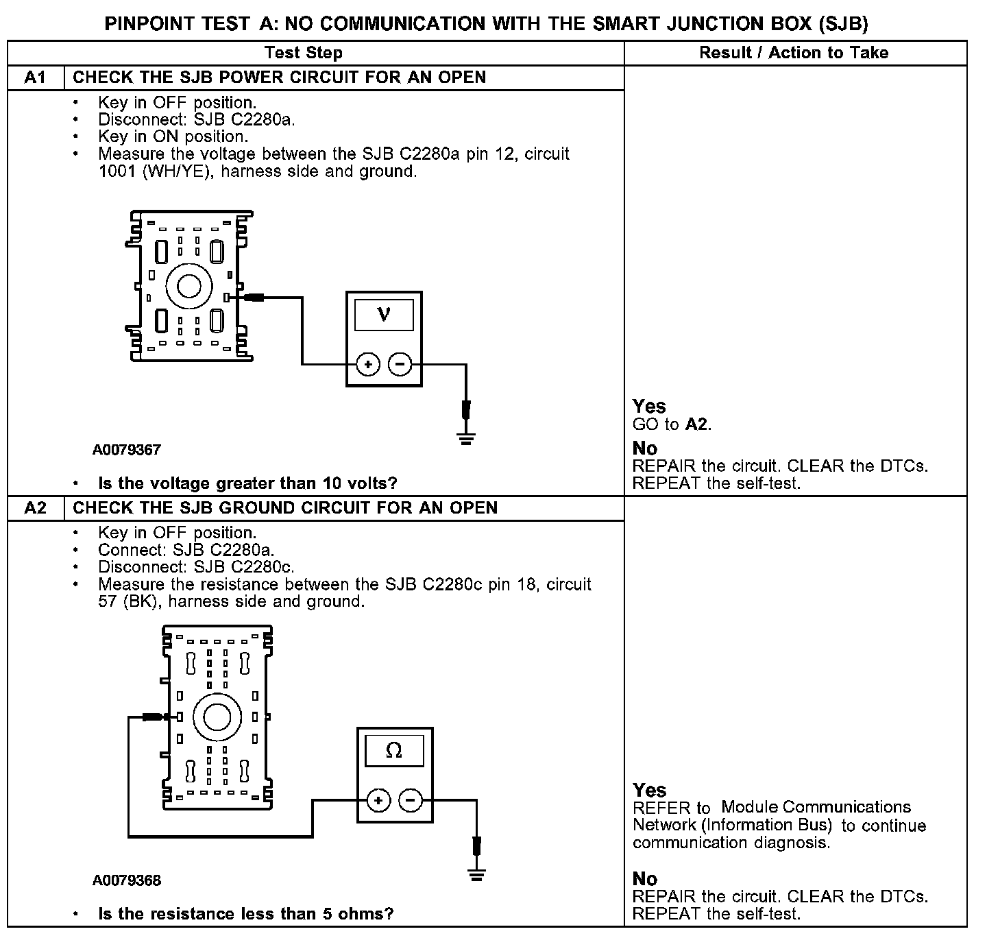 PINPOINT TEST A: NO COMMUNICATION WITH THE SMART JUNCTION BOX (SJB)
