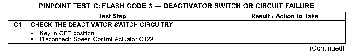 PINPOINT TEST C: FLASH CODE 3 - DEACTIVATOR SWITCH OR CIRCUIT FAILURE