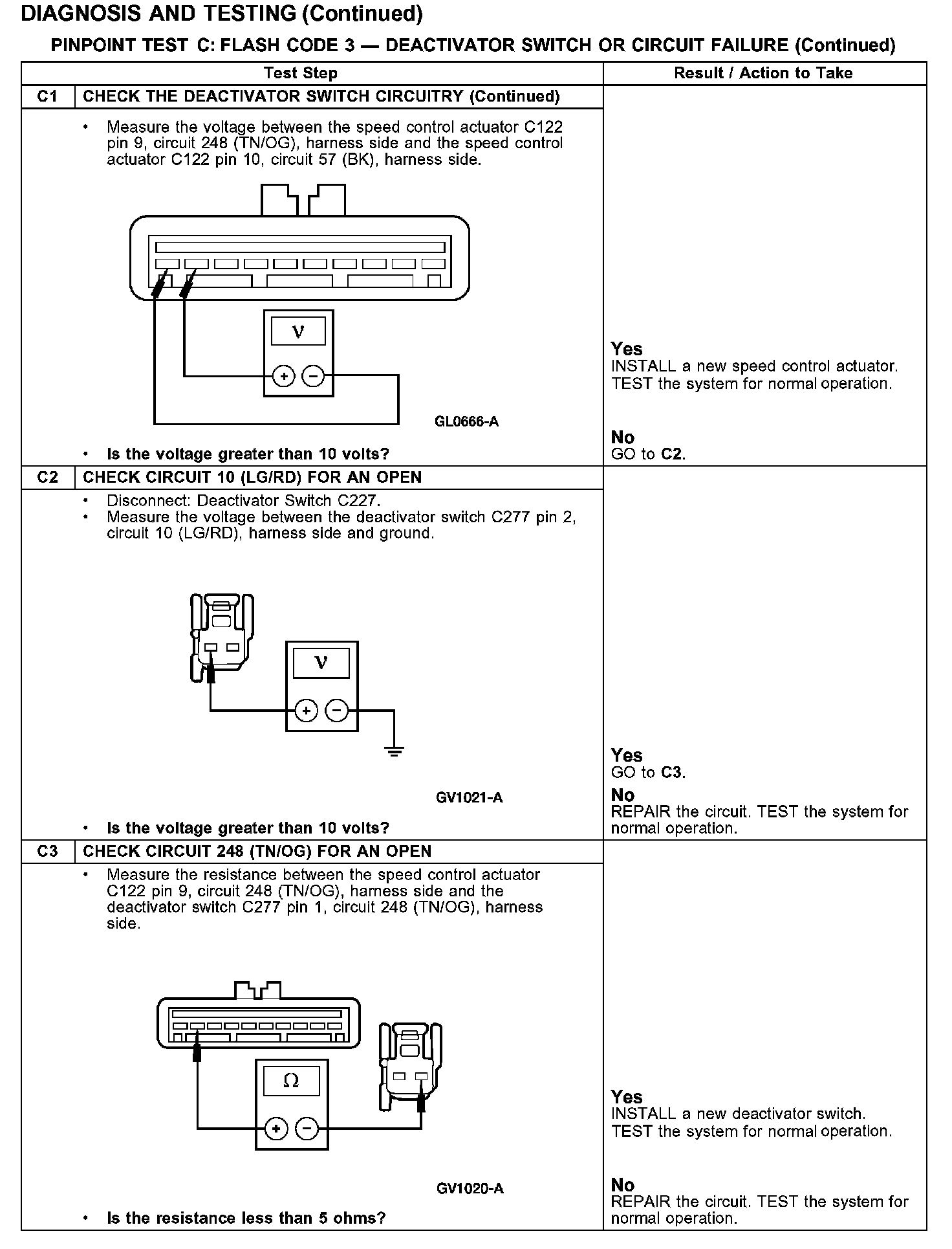 Test C: Flash Code 3 - Deactivator Switch or Circuit Failure