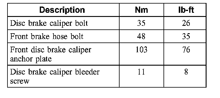 Torque Specifications, Front
