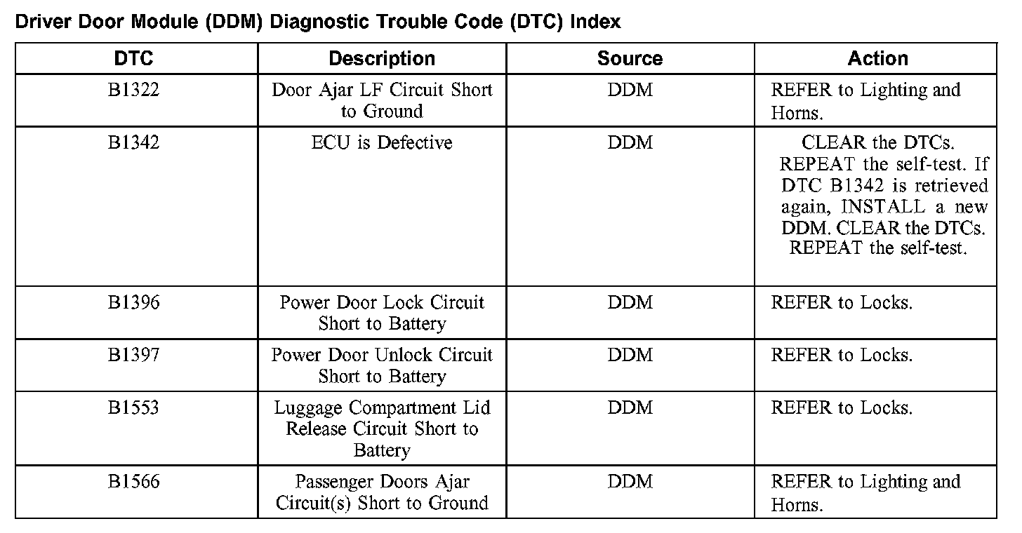 DDM Diagnostic Trouble Code (DTC) Index