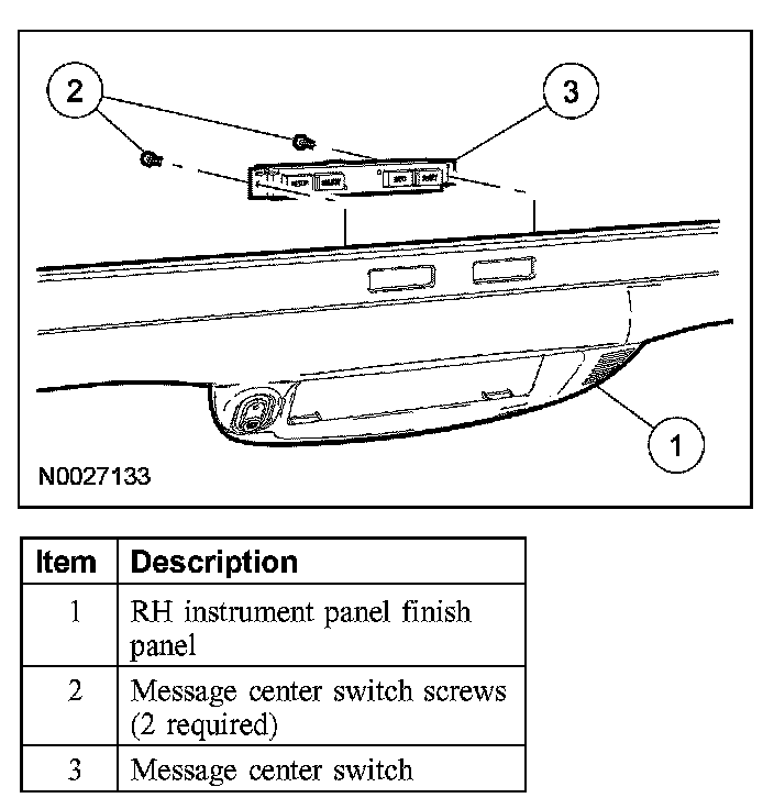 1. NOTE: The RH instrument panel finish panel is held in place with spring clips located on the RH instrument panel finish panel.