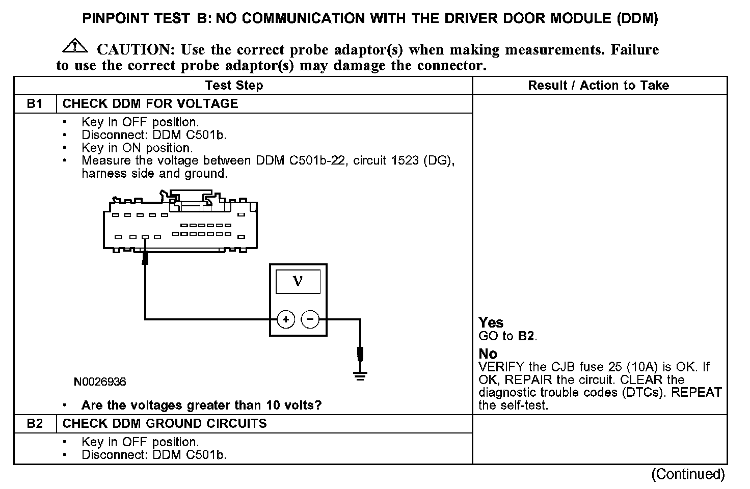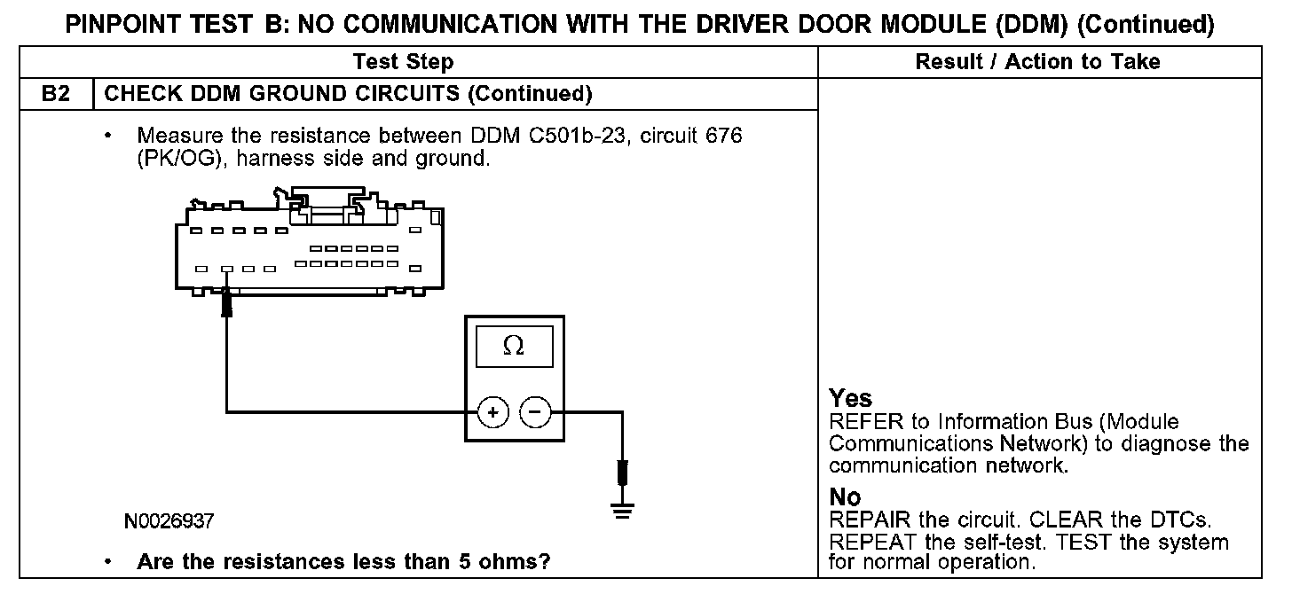 PINPOINT TEST B: NO COMMUNICATION WITH THE DRIVER DOOR MODULE (DDM)B1-B2: