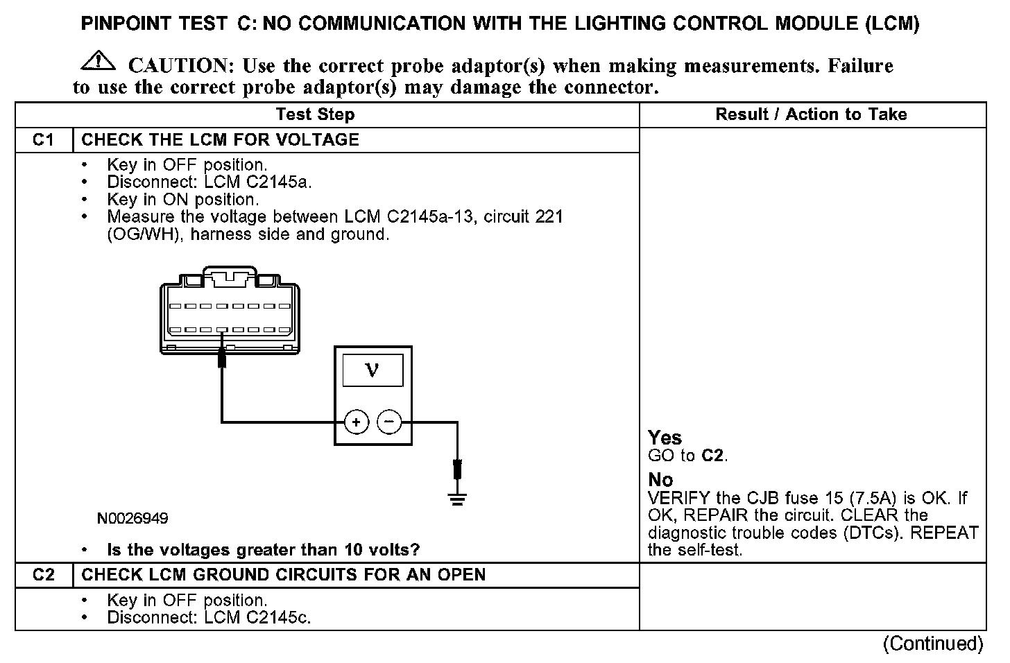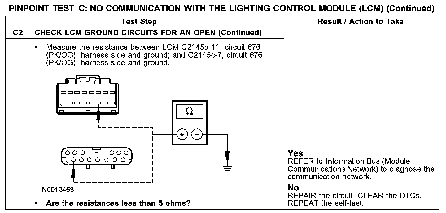PINPOINT TEST C: NO COMMUNICATION WITH THE LIGHTING CONTROL MODULE (LCM)C1-C2: