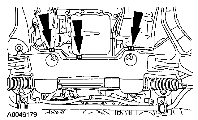 7. Position the brake line into the retaining clips at the rear of the number 2 crossmember.