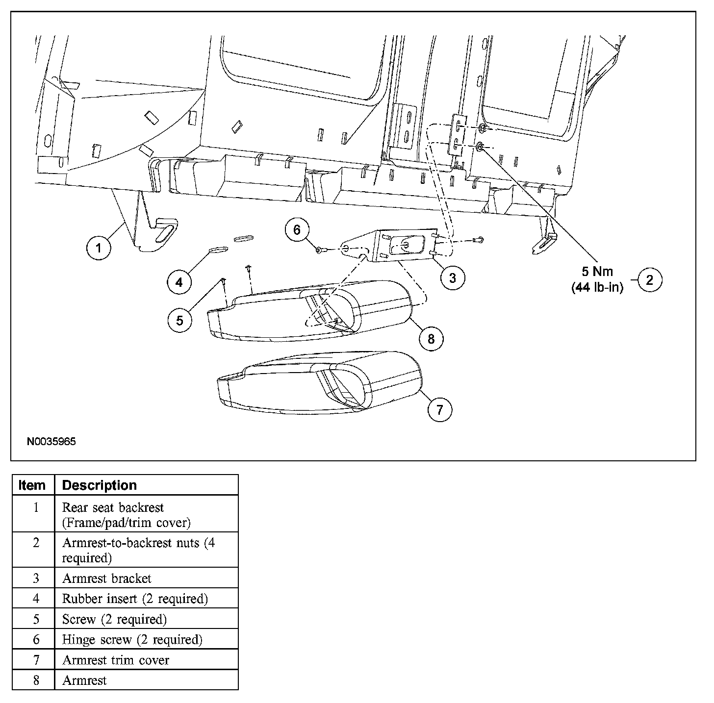 5. WARNING: The retaining wire in the rear seat cushion pad and frame and rear seat backrest pad and frame back must be fully seated in the retainer brackets to prevent the seat backrest and seat cushion from sliding forward in the event of a collision. Failure to follow these instructions may result in personal injury.