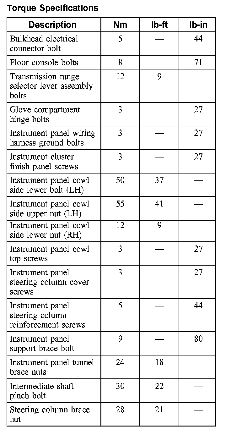 Dashboard / Instrument Panel: Specifications