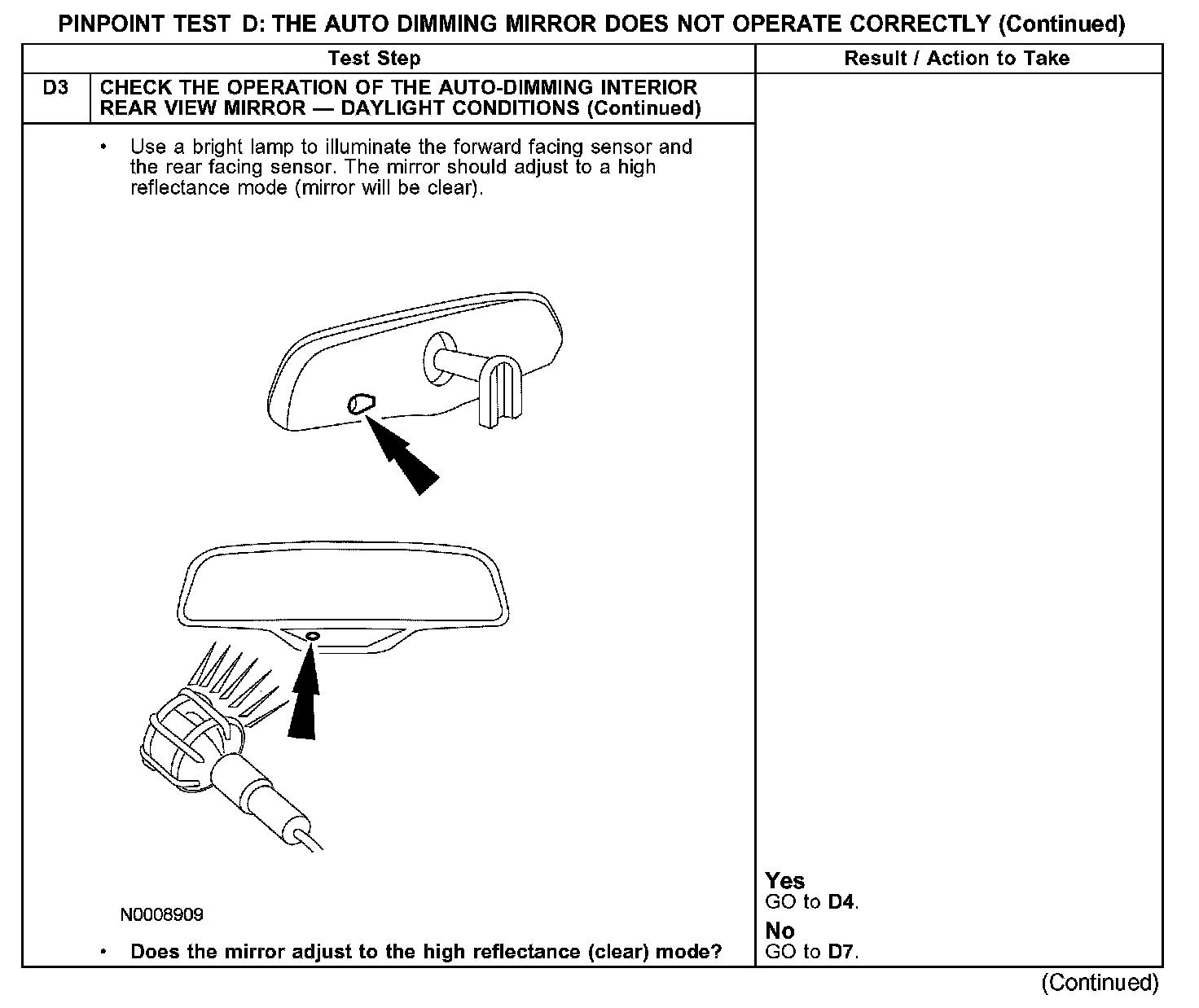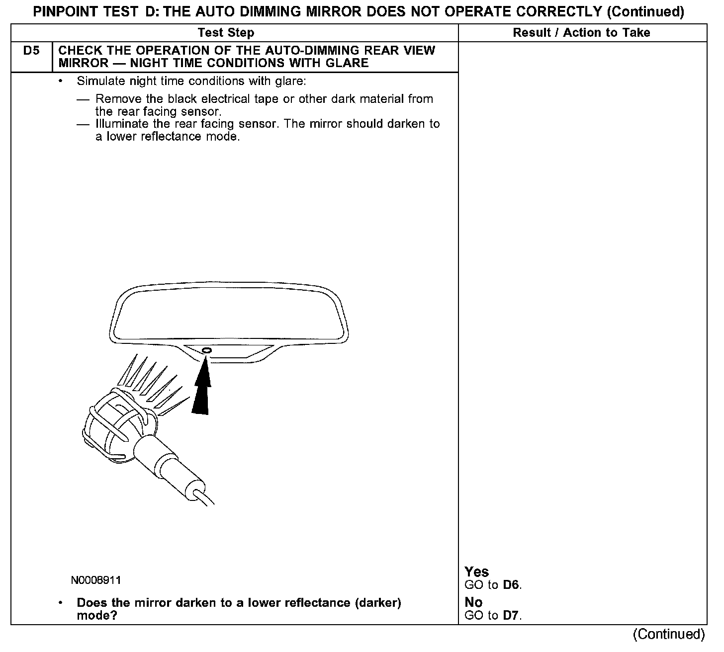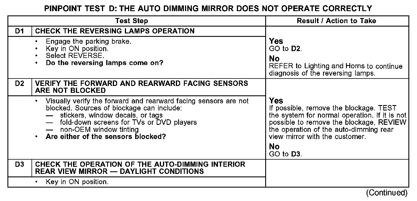 PINPOINT TEST D: THE AUTO DIMMING MIRROR DOES NOT OPERATE CORRECTLYD1-D3: