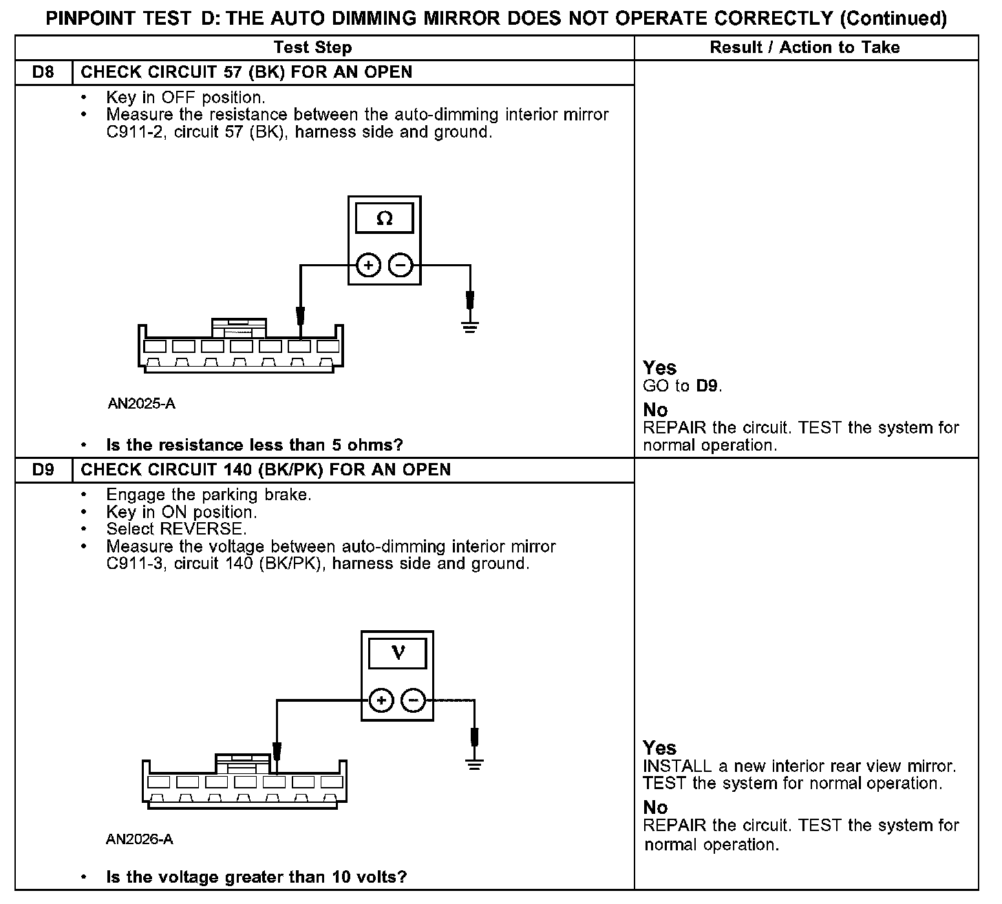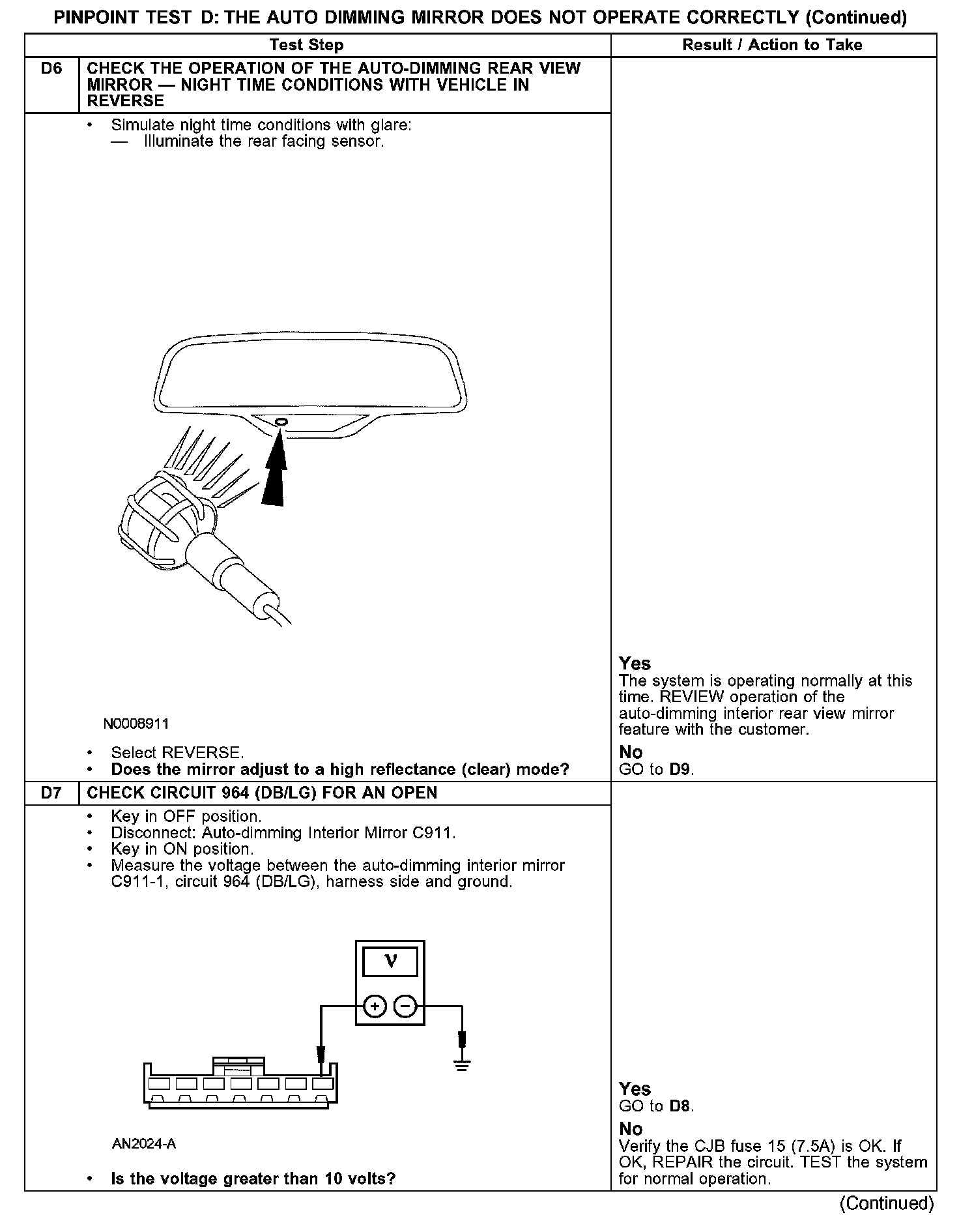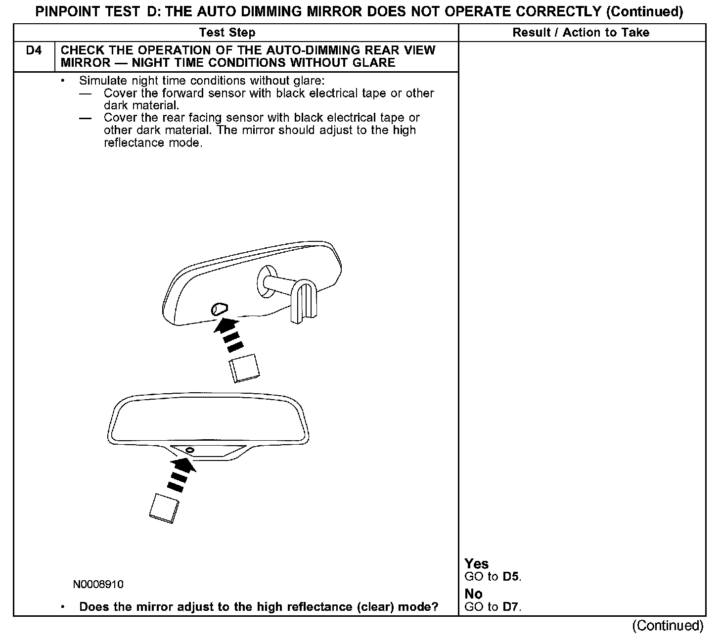 PINPOINT TEST D: THE AUTO DIMMING MIRROR DOES NOT OPERATE CORRECTLYD1-D3:
