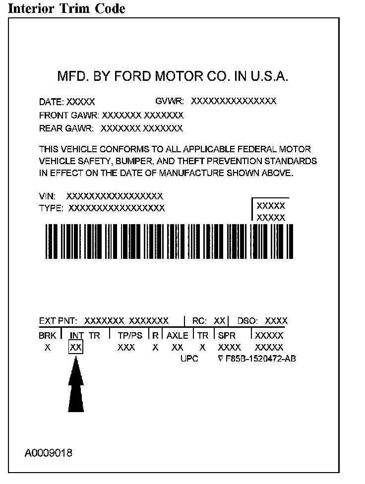 The interior trim codes are listed below. The first letter/number is for the interior Fabric. The second letter is for the interior color.