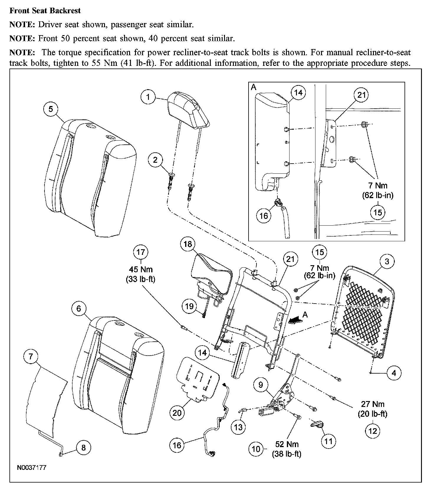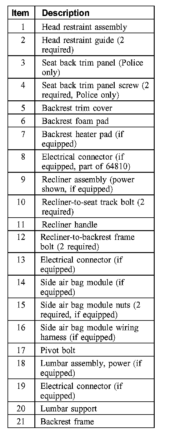 SEAT - EXPLODED VIEW, FRONTFront Seat Backrest (Part 1):