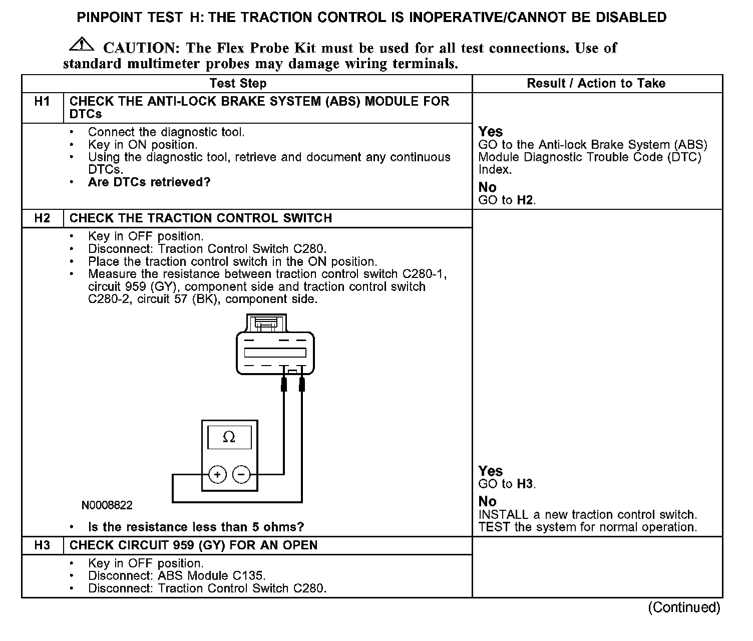 Test H: The Traction Control Is Inoperative/Cannot Be Disabled