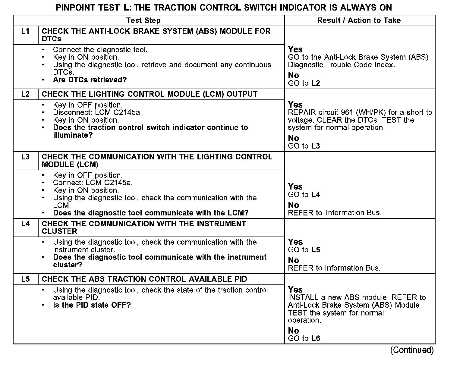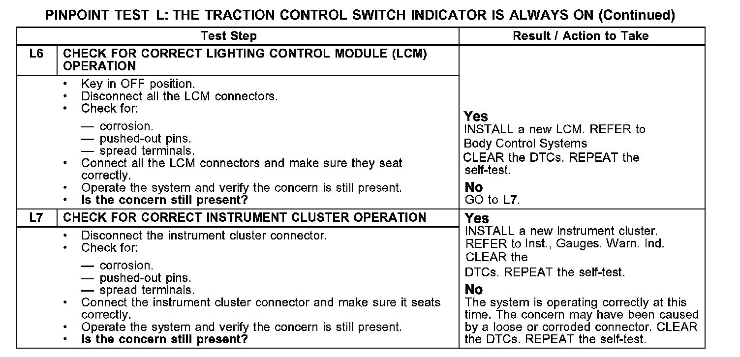 Test L: The Traction Control Switch Indicator Is Always On