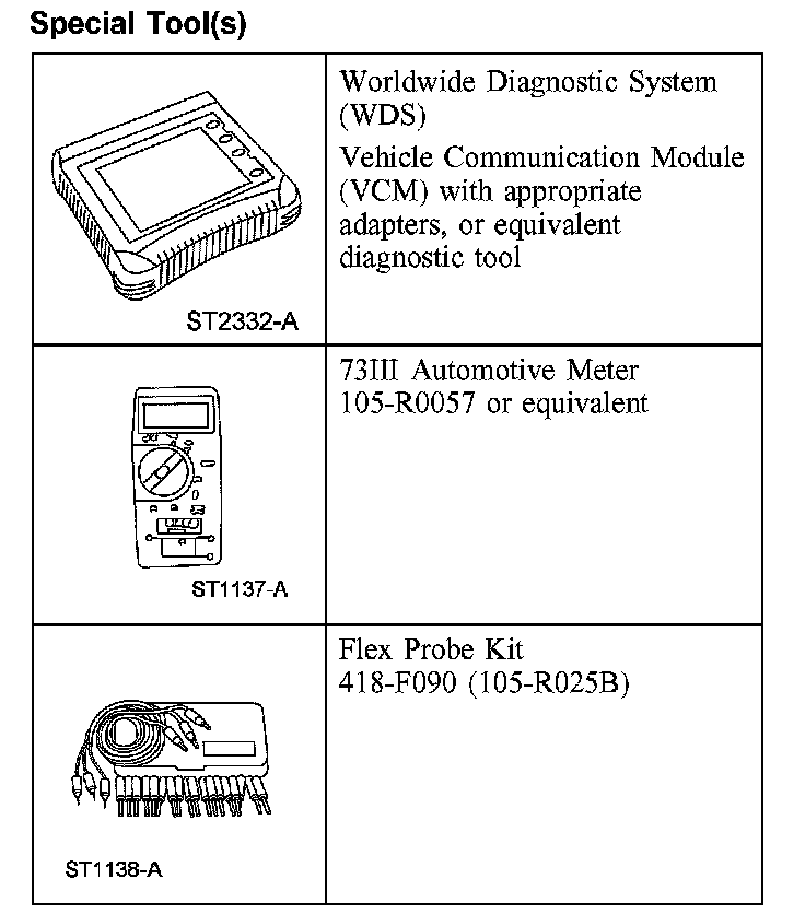 Special Tool(s) Used with Diagnosis and Testing