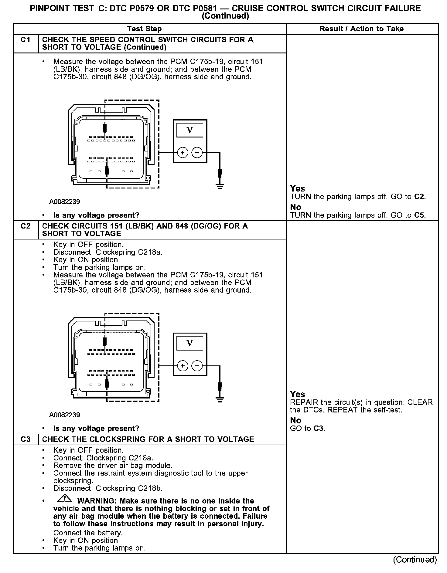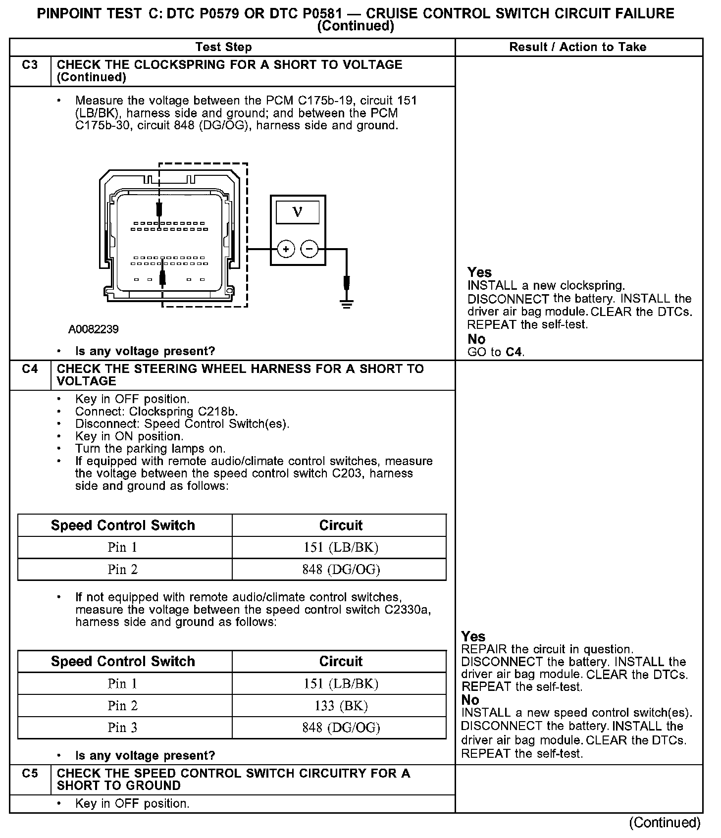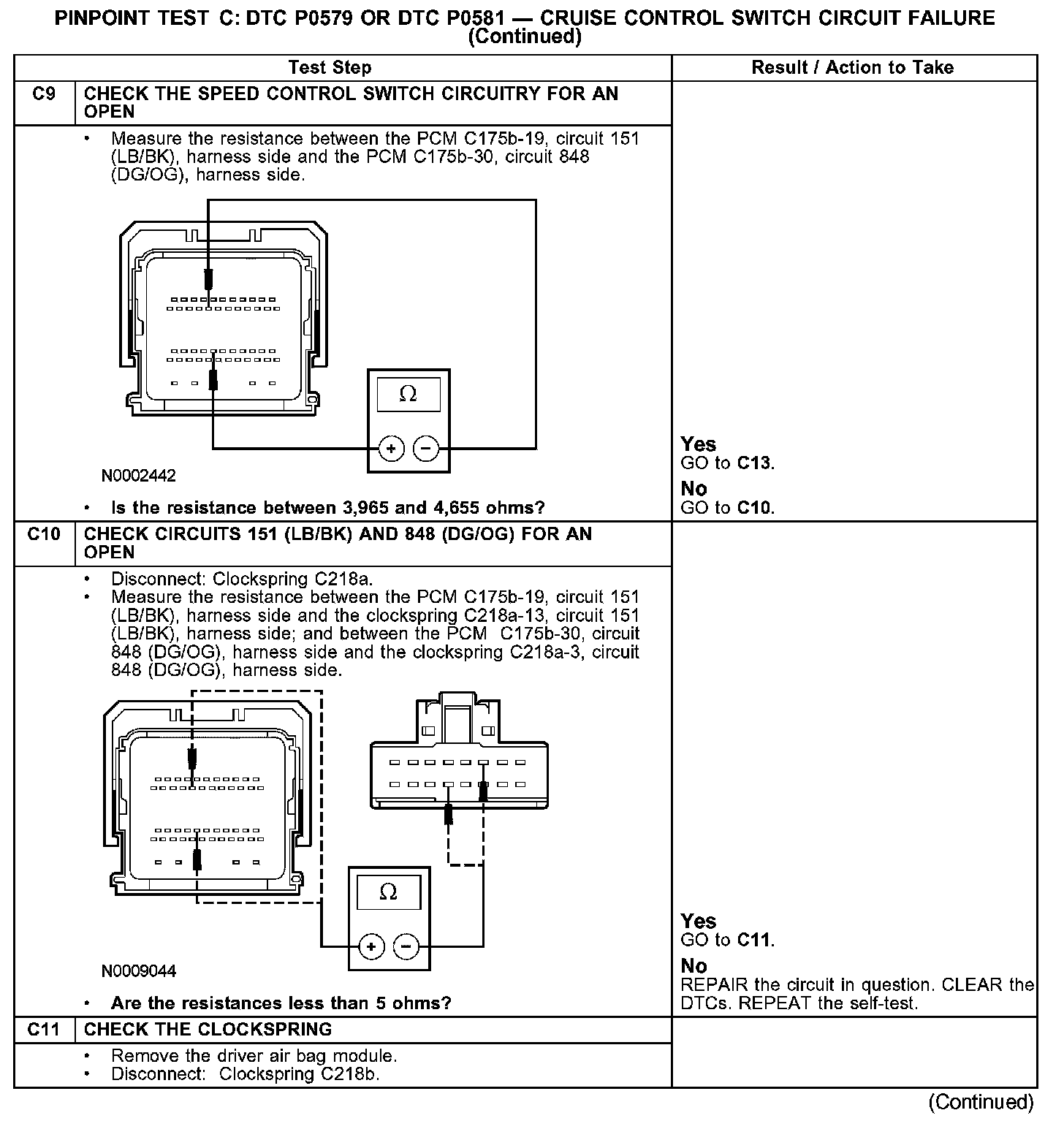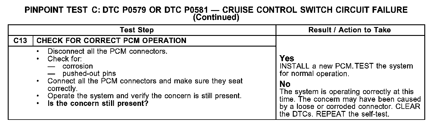 PINPOINT TEST C: DTC P0579 OR DTC P0581 - CRUISE CONTROL SWITCH CIRCUIT FAILURE